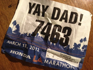 Dominic dropped us off at Dodger Stadium race morning, and we stood packed in a tent, praying it wouldn't rain, as forecast.  Pops was clearly excited - and man, how couldn't you be?  He'd knocked out all of his training, trimmed down to a quite svelte version of himself and now was about to run farther than he'd ever run before.  After three rounds of Randy Newman, we were off.